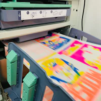 - 丝网印刷(Silk-Screen Printing),版画制作较常用的方式,起印量低,专色印刷,但制版和印刷费时费力,人工成本较高。